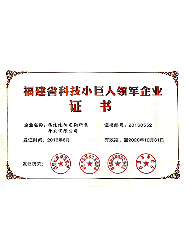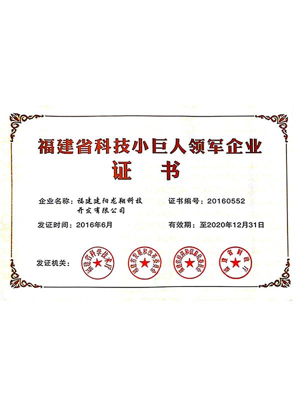 福建省科技小巨人領(lǐng)軍企業(yè)證書